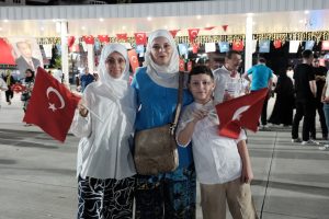 Programa katılanlar arasında kucağında bebeğiyle gelen anneler de vardı, torununu elinden tutan dedeler de. Çocuklar Türk bayraklarıyla koşarken, gençler hep bir ağızdan marşlar söyledi. Meydan, 7’den 77’ye vatanına sahip çıkan onurlu kalabalıkla doldu.